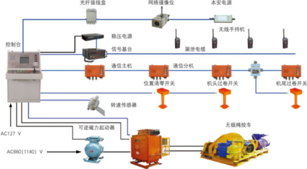 自动运行:一键启动、自动运行,绞车可根据预先设定的速度,在坡道、弯道、岔道等关键点实现自动加减速运行,在机尾停车点实现自动停车;