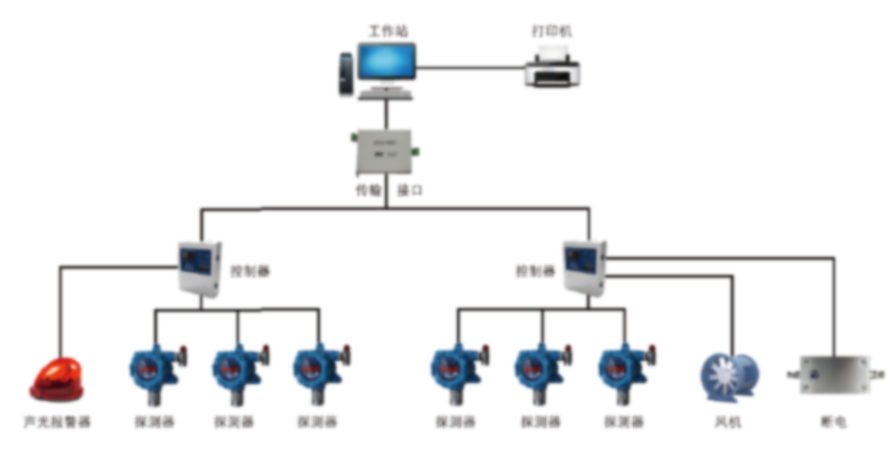 系统概述 CJ-100气体探测监控系统是采用先进的计算机网络技术,ARM嵌入式技术和EMC抗干扰技术等研制的工业气体检测报警控制系统,由功能简洁、操作方便的CGO-100报警控制器和CGQ-100