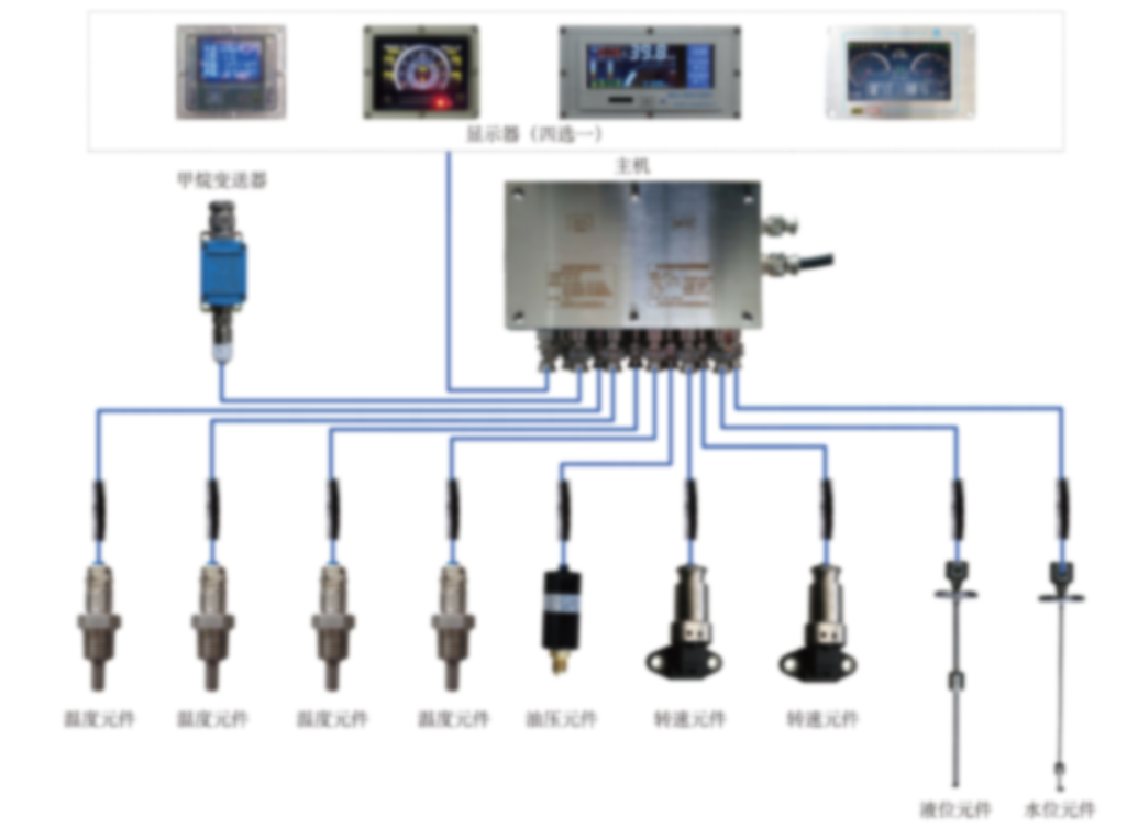 煤矿用柴油机车自动保护装置适用于煤矿井下以柴油机为动力的设备的监测和自动保护,可监测防爆无轨胶轮车(人车、货车、皮卡车、指挥车、特种车辆)、普轨钢轮柴油机车、柴油机水泵、柴油机单轨吊机车等设备的发动机冷却水温、油温、水位、油位、发动机转速、行车速度、环境瓦斯浓度以及行驶里程等参数,当参数超标时能够根据设定逻辑报警或停车。